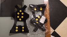 Spikes came quickly about 3 weeks. There was no need to communicate with the store. I took the size L, at 36-37 the size of the stretch, and 38 size is not available yet, but I hope there will be norms. Shypa took for an elderly person, so as not to fall.