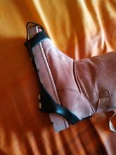 It's the second. The first broke and treated two seasons. This time I took a larger size (35 RR). Size S is also normal, but it sits on the shoes tightly, accordingly broke in the seam. The camera certainly smoothes the details, but it is the tension in the heel that gives the gap.