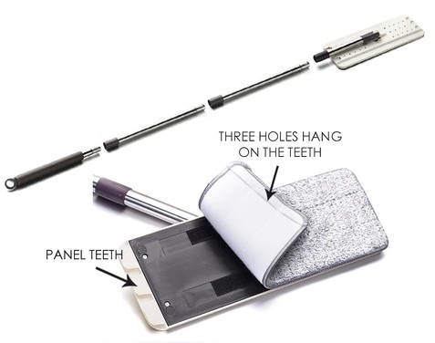 Please make sure the pad hangs on the panel teeth, thus it will not get off when you use the mop.