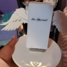 The wireless charger has a special, “extra” design. When you put the phone on, the angel’s wings will unfold, and the base will have an angel’s aura. The glossy and sleek surface looks very novel and elegant.