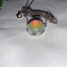 Gorgeous necklace! The product is made very carefully, without any flaws. Looks great. Crystal changes color in different lighting. Shimmers in sunlight with different nuts and flowers. It looks fascinating and spectacular. Pleased with fast delivery. The store is very kind. I recommend.