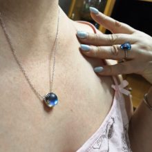 Very beautiful suspension, it is interesting to observe overflows inside the stone when the angle of view changes. When I photographed, I noticed a microscopic crack on the diameter of the stone, but in any case-it is completely invisible. I ordered four jewelry at the sale of 11.11, and the store put as a gift two more very beautiful pairs of pouches. Everything came in a large mutton bag, each decoration was laid in its extra small bag. I will definitely order from this seller more.