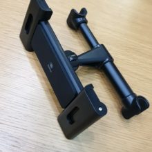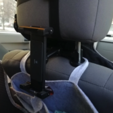 This is really easy to install, and works well with smaller headrests. It is a little hard to pull the arms apart with one hand while you hold the tablet if you need to fully extend the arms.