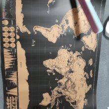 Covered with premium gold foil which lays above a beautiful colorful world on a high-end matte black sheet. We use some of the finest materials to create the most stunning maps.