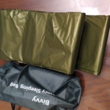 Survival bivy bag is constructed of 26um extra-thick mylar material & puncture resistant polyethylene material. The durable material makes the sleeping bag very strong, and can be used repeatedly without damage.