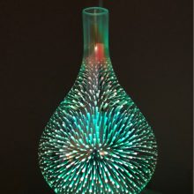The Firework Diffuser contains an intricate light pattern that resembles fireworks frozen in time – a truly unique work of art! A changing array of colors flash as LED lights shift through 6 mesmerizing patterns, providing hours of relaxation. Holds up to 1L of water that lasts 4-8 hours. A timer can be set to stop the device on a schedule. The device works with all essential oils – we recommend peppermint, especially during the holiday season!
