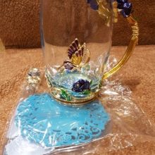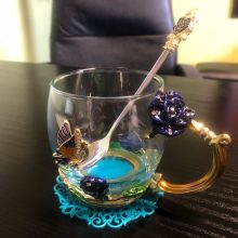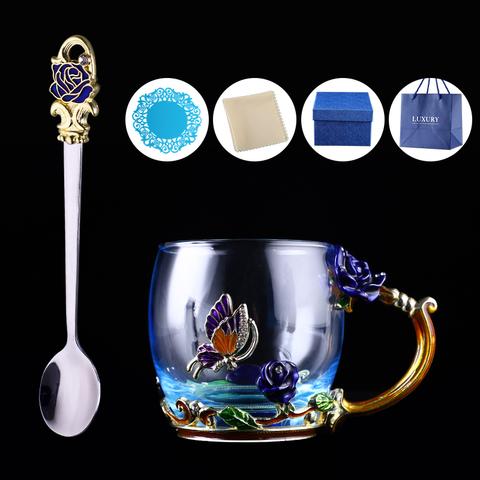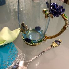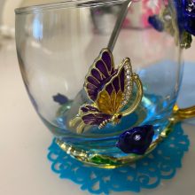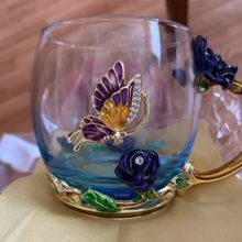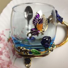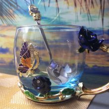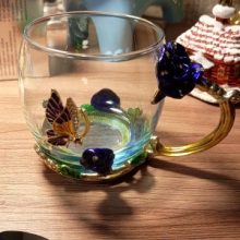 Handmade Beauty And Novelty Enamel Cup is made of high-quality eco-friendly metal and crystal clear glass, finished with crystals and enamel, this mug is a unique art between vintage, dreamy, and luxurious style. It will improve your lifestyle and artistic accomplishment. Stand out with butterfly and rose flower designs on it, we believe it will become your favorite glassware, and it can even be used as a decorative piece for your kitchen and house!
