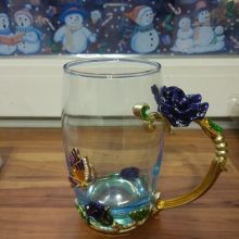 PERFECT HANDMADE ENAMEL CUP: The handmade enamel glass cup has an elegant style with butterfly and rose flower 3D designs. There are no cups exactly like yours in the world. Yours is only one and will never fade as time passed, even if you use the mug daily. The glass material of the cup is glittering and translucent, classic but refined and the noble stylish look is functional yet decorative.
