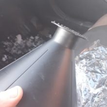 to your car without spilling all over the place. Just remove the tip of the ice scraper and it instantly turns into a funnel.
