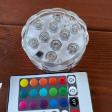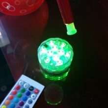 These little LED lights are very bright and water proof as long as you don’t screw them too tightly together. I Purchased some magnets and attached aCoded magnet to the back of each then place them on the inside of my pool and put the other half of the magnet on the outside of my soft sided pool to hold them in place. Works like a charm! Once it comes with three remotes but you only need one to control them all.