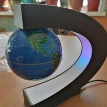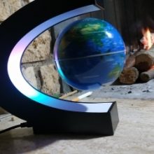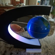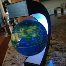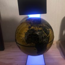3 colors available: The floating globe is available in three different colors including blue, gold, and black.