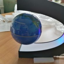 The higher part of the base contains a powerful electromagnet and a microprocessor allowing the globe to levitate and rotate in both directions.
