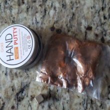 It doesn't look pretty at all when you first open it. Nothing like the pics. But work it a bit in your hands and the magnetic material seems to mix with the putty and it looks much more like the pics.