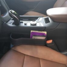 This is a great solution if you ever find yourself not having enough space to place items. However, make sure you look at your front seats and make sure your emergency brake isn’t on the side you would want the car gap to fit. If you have an emergency brake right next to your seat it won’t fit correctly. Overall, it’s a great product especially the bag hooks I use it to hang my umbrella and my purse.