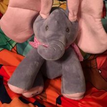 3 COLORS – Choose from a gray elephant, a gray one with pink ears and feet or even gray elephant with blue ears and feet