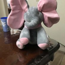 My daughter received this as a gift and let me tell you, it is THE cutest singing stuffed animal i have ever seen! It’s such great quality, so so soft and well made and the voice is super cute. (Not creepy like some!!) The elephant’s ears move to the music and play peek-a-boo with baby. It’s held up great so far even with my 1.5-year-old pulling on the ears and pushing the buttons a hundred times a day! We show this off to everyone! I think it will become my go-to baby gift for friends now, and would definitely purchase another one if anything were to happen to ours. I am shocked at the price, something this great of quality and cuteness would generally be upwards of $35-40, so at this price is the perfect buy!!