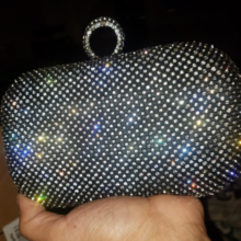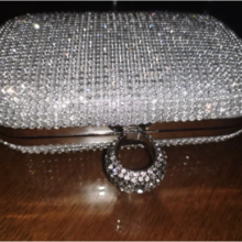 Our Rhinestone Evening Clutch is crafted from polyester and metal and is available in gold, black, or silver for a versatile piece in your collection that can go with any dress, outfit, or occasion. Each clutch comes with a matching chain that measures up to 47in (120cm); the chain is removable for full customizability (ladies, the choice is yours).
