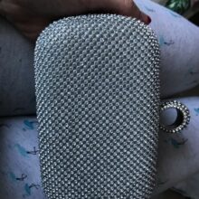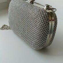 I’ve owned a little black dress and silver shoes for a long time, but I’ve never had a matching clutch to go with it. I bought this lovely silver clutch to complete my outfit for a business event. It’s a classic look with enough inside storage for the evening (lipstick, credit cards, money), but it won’t hold my large iPhone. It’s shiny but not overly so, which is tasteful for me. It can be carried in-hand or over the shoulder because it has a fine link chain strap that fits inside the clutch or comes outside. I like it very much. If it gets a little dirty, you can wipe if off with a mild soap solution.