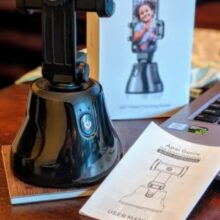 Pretty handy 360 holder, it follows you when you move around, nice for unboxing videos or tutorials. Feels a bit plasticky but apart of that is actually pretty solid, holds my iPhone pro max and also android phone without any issues. overall pretty satisfied!
