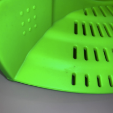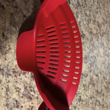 I waited awhile to give my review. I wasn't sure how often I would use this but turns out " a lot". It strains hot foods very easily. I first used it for my pinto beans and then I tried it on Spaghetti. I was really amazed that I didn't lose 1 single noodle to the sink. Would not use it for rice as the slots are to wide. I used to use the lid to drain but would burn my fingers or lose food down the sink. This is perfect.