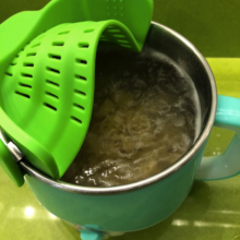 Great for when working with limited counter space, this strainer works just like a much larger colander yet takes up just a fraction of your cabinet and counter space.