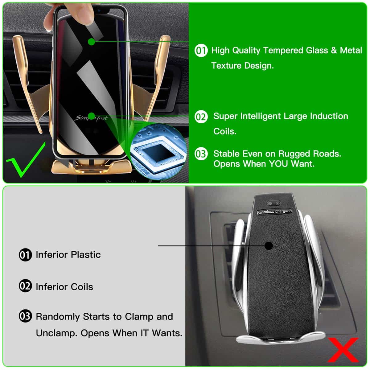π 10W fast charging – Adopts high charging efficiency upgraded independent coil, Qi wireless fast charging provides faster charge than most wireless car charger mounts in the market.