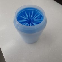 My chihuahua reluctantly agreed to let my grandson clean his paws with this paw cleaner. It consists of a sturdy plastic cup with soft, silicone fingerlets inside for cleaning. Just fill the cup about 3/4 full with warm soapy water and put the dog’s paw in a few times. The paw comes clean in a jiffy. Repeat on the other 3 paws. It can be used on a little or a big dog. It’s portable so it’s good to take camping, to the park, or to use at home.