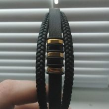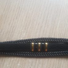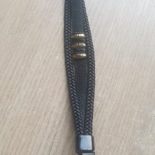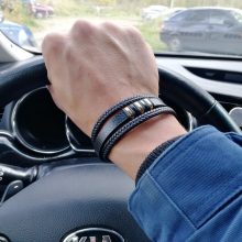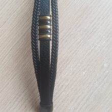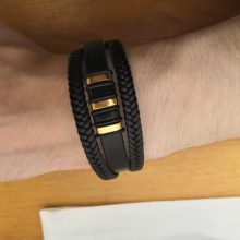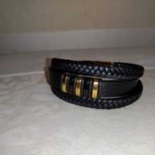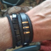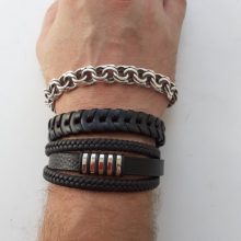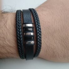Our men’s bracelet has two leather strands on each side, creating a unique look. This versatile classic bracelet can not only be worn with your jeans and T-shirt, but it can also complement your look and style whether dressed for surfing on the beach or in your tux for the red carpet!