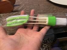 Small and quality tool. Bristles to pick up dirt are hard, they're not flimsy, so great. The Black part becomes a perfect picker for use in sliding window sliders, for example.