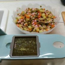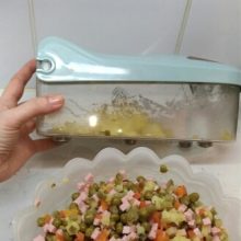 Hello, everybody! Chopper worthy. Knives are very sharp, cut with a bang. Don't be careful. Efforts need to be applied, but not significant. Plastic is thick, heavy of excellent quality. There are rubber soft legs, does not slip. Cutting potatoes took exactly a minute.