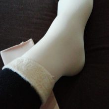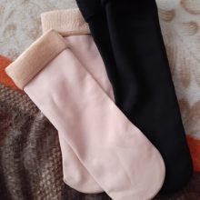 Good socks. It's good to stretch. With insulation inside. In Black, the outside of the socks are smoother, in beige-the surface is softer and pleasant to the touch. After use, I will add a review. I hope they are warm enough and do not slip off their feet. While, it seems, they sit tight enough. Thanks to the store!
